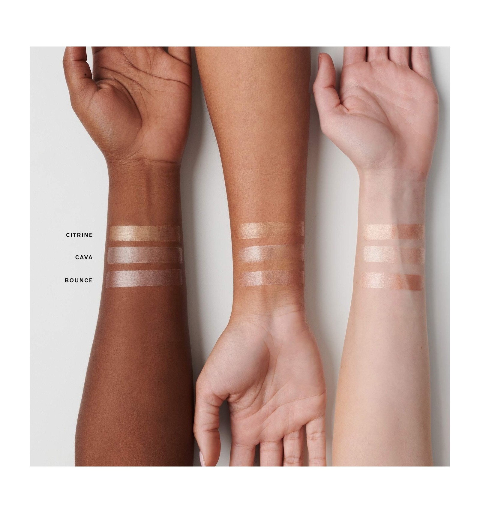 Iluminador en barra que deja la piel naturalmente luminosa y dewy, sin glitter, al reflejar la luz del día.